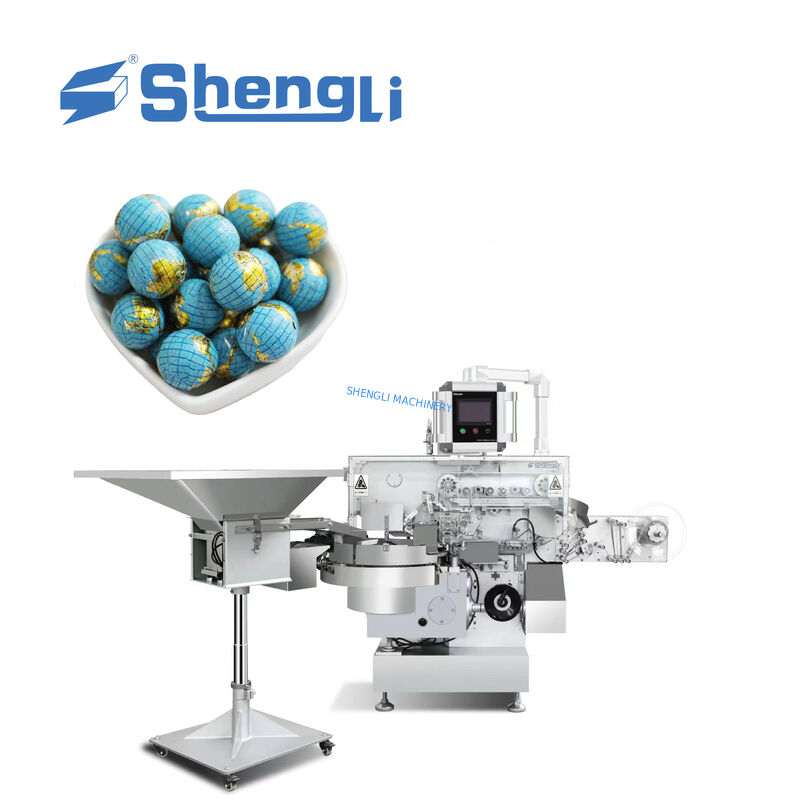 High-Speed 150-350 pcs/min Chocolate Wrapping Machine with One-year Warranty for Ball Egg Spheroid Peanut Bottle Shapes