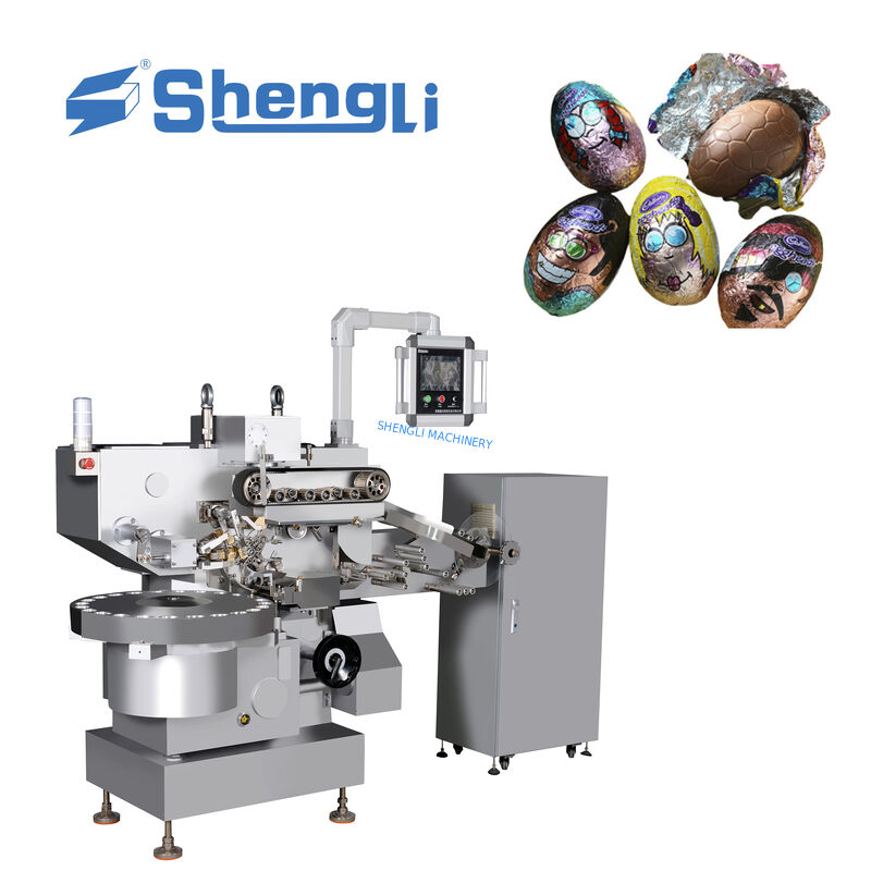 The SL-SBQS450 series wrapping machine is specifically designed for round, oval, football-shaped, rugby-shaped, and egg-shaped chocolate candies. This advanced packaging solution features a vibration hopper for efficient material transport and space optimization.